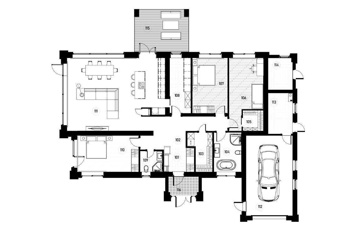 Строгая элегантность светлого фасада, контраст темной кровли и безупречная геометрия. Этот каменный дом создан для тех, кто ценит современный комфорт и визуальную чистоту.